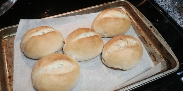 Preheat the oven at 400 F, add a pan with boiling water on the oven rack below. Before putting bread in the oven make a small incision in the middle, spray them with water. Cook for 25 to 30 minutes until the bread is nicely brown and crispy. Preferably every 10 minutes open the oven and spray the breads and sides of the oven with water then close the oven door fast to avoid steam to escape.