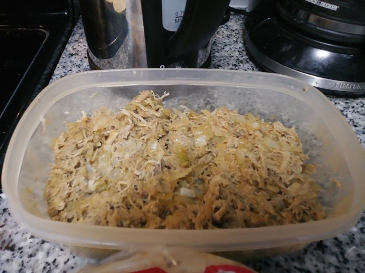 - Shredded rotisserie chicken (1 chicken breast, 1 small onion, finely chopped), or