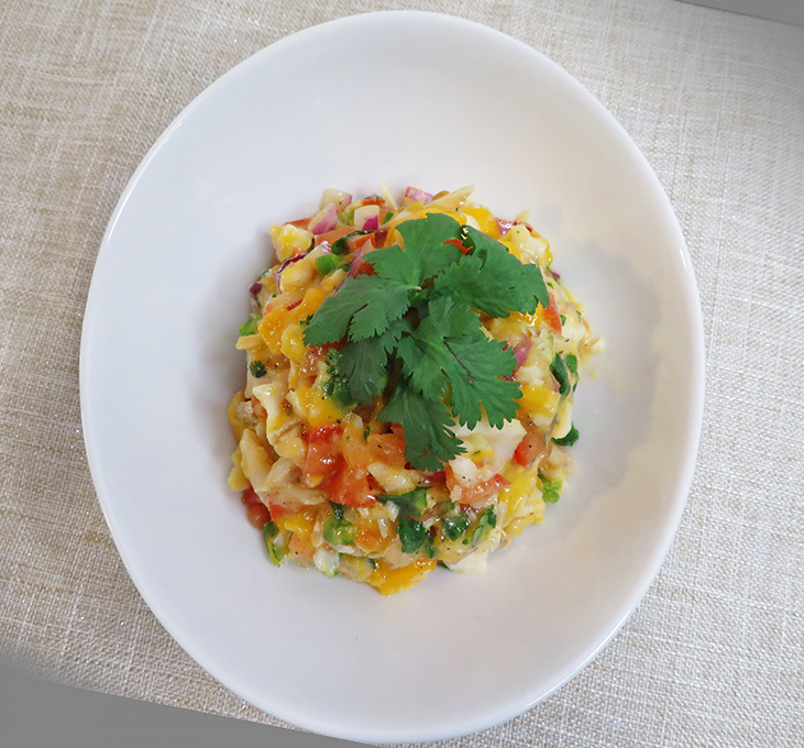 This ceviche made with fully-cooked fish and mango has the perfect amount of sweet and tart taste that you will love. Enjoy with some nachos, tostadas or soda crackers; as an appetizer, main or side dish. Really refreshing!