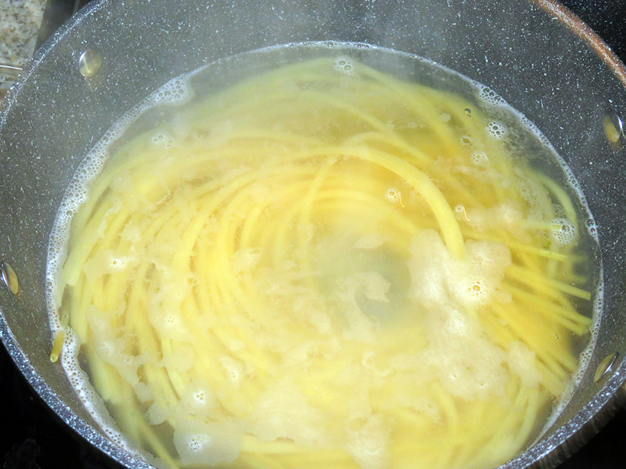 - 1 package (450 grs.) of spaghetti or spaghettoni pasta
