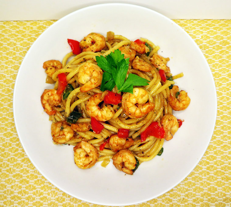 This quick, easy to make pasta with shrimps and bell peppers is an excellent choice for any busy weekday. Pair it with a glass of your favourite chilled red or white wine and turn your dinner into a fancy feast.