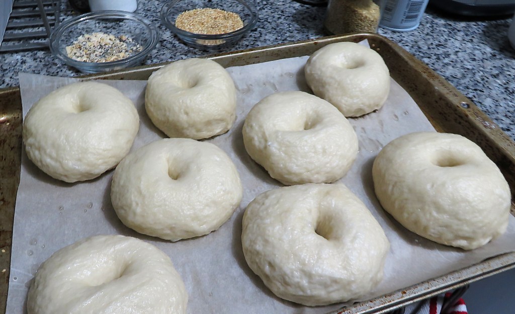 Preheat the oven at 400 F, cook for 25 to 30 minutes until the bagels are brown and crispy.