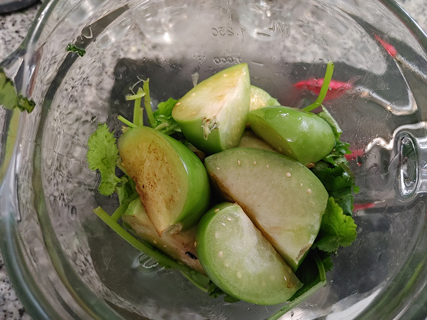 - 2 large tomatillos (washed)