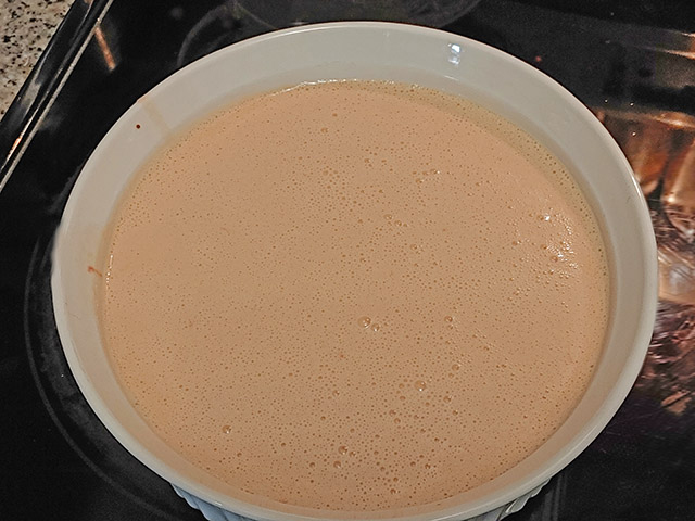 Pour the flan mixture into the springform or circular baking pan. Cover with aluminum foil.