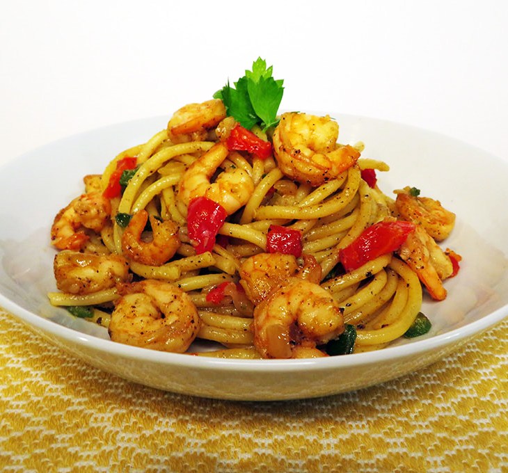 This quick, easy to make pasta with shrimps and bell peppers is an excellent choice for any busy weekday. Pair it with a glass of your favourite chilled wine and turn your dinner into a fancy feast.
